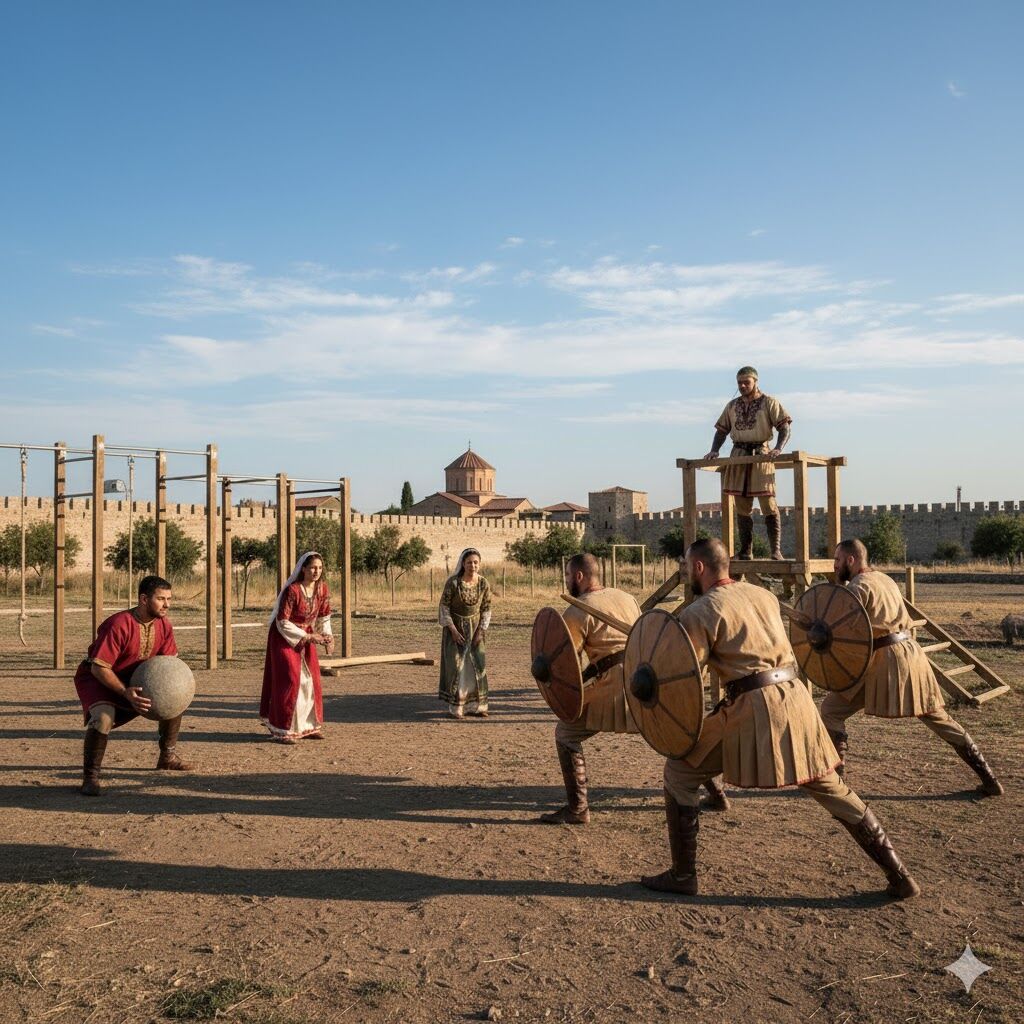 4. Bizans sporunun bir diğer özelliği de “askeri hazırlık süreci” için bir yöntem olarak kullanılmasıdır. Bu konudaki görüş ve becerileri ifade eden kişiler genellikle imparator ve generallerden oluşmaktaydı. Onlar, oyun ve spor aktivitelerinin askerlerin rahatlamasına, savaş stresini azaltmalarına ve kontrol duygularını geliştirmelerine yardımcı olduğunu belirtmişlerdir. Askeri tatbikat aralarında birçok spor etkinliğinin (binicilik, ok atma, atletizm, kürek çekme, avcılık vb.) yapıldığını bilinmektedir. En sevilen aktivite atlı okçuluk (at üzerinde okla hedefi vurma) faaliyeti olmuştur.