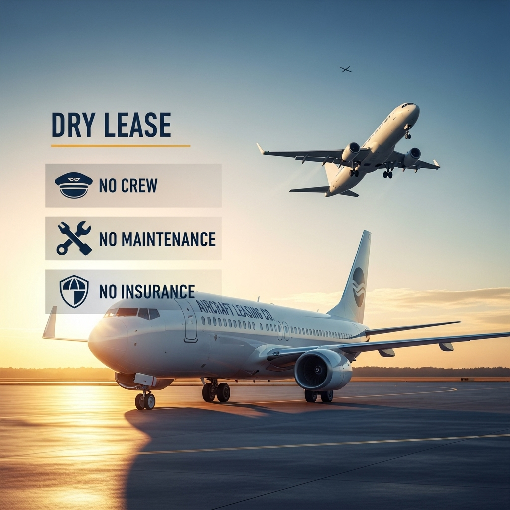 Dry lease, kiralayanın uçağı herhangi bir pilot veya diğer mürettebat üyesi veya bunların hizmetleri olmaksızın bir kiracıya kiraladığı bir kiralamadır türü olarak tanımlanmaktadır. Dry lease’in içeriği, kiraya verenin (lessor) uçak gövdesini kiracıya (lessee) devretmesi; ancak uçuş mürettebatı (pilot, kabin ekibi), bakım hizmetleri, sigorta ve operasyonel yönetim gibi unsurları sağlamaktan sorumlu olmaması yönündedir. Kiracı, uçakla ilgili teknik bakım, hava aracı tescili, sigorta, uçuş operasyonları ve mürettebat temini gibi tüm yükümlülükleri üstlenir. Bu nedenle dry lease, kiracıya yüksek düzeyde kontrol sağlar; ancak bu kontrol, teknik altyapı ve idari kapasite gerektirir.