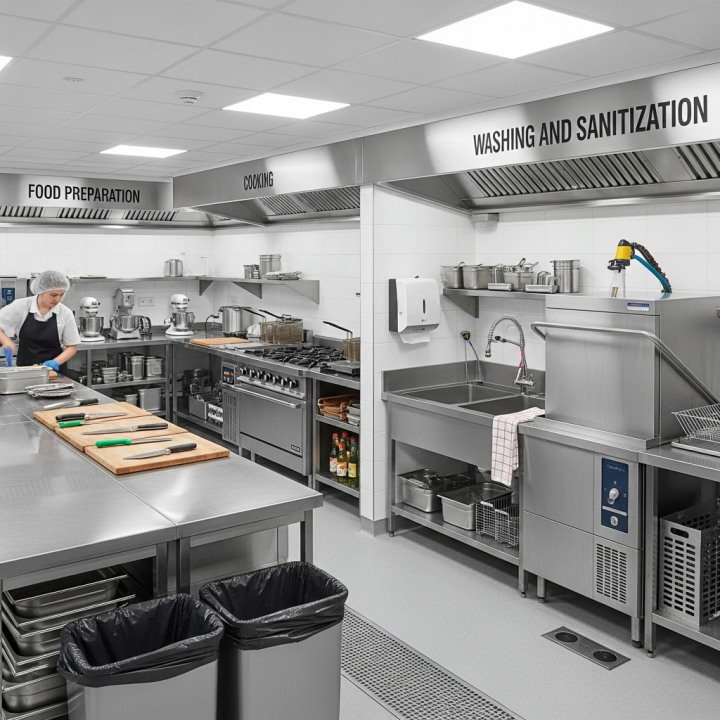 Gıda ve içeceklerin üretiminin gerçekleştirildiği mutfaklarda kullanılan servis ve üretim ekipmanlarının düzeni, hijyenik durumu ve temizliği için ayrılmış özel aılan.