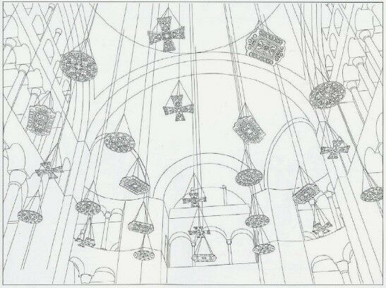 Bizans Dönemi'nde özellikle kiliselerde, zincirlerle tavana asılarak kullanılan aydınlatma aracı, metal avize.