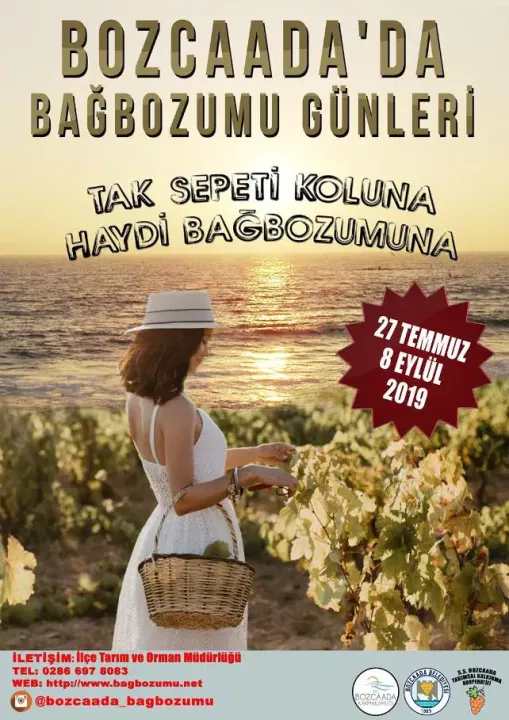 Bozcaada Belediyesi. (2025, Eylül). Bozcaada 2025 Etkinlikleri. https://www.bozcaada.bel.tr/wp-content/uploads/2025-etkinlikleri.pdf, (Erişim tarihi: 22. 10. 2025); Bozcaada Haber. (2025, Eylül 5). 25. Bozcaada Kültür Sanat ve Bağbozumu Festivali: Hasat Zamanı geleneği yeniden hayat buluyor. https://www.bozcaadahaber.net/25-bozcaada-kultur-sanat-ve-bagbozumu-festivali-hasat-zamani-gelenegi-yeniden-hayat-buluyor, (Erişim tarihi: 22. 10. 2025); Bozcaada Kaymakamlığı. (2025). Bozcaada’da 25. Kültür Sanat ve Bağbozumu Festivali başladı. https://www.bozcaada.gov.tr/bozcaadada-25-kultur-sanat-ve-bagbozumu-festivali-basladi, (Erişim tarihi: 22. 10. 2025), Durmuş, H. (2006). Bozcaada’nın sosyo-ekonomik yapısı ve kültürü [Yüksek lisans tezi). Eskişehir Osmangazi Üniversitesi, Sosyal Bilimler Enstitüsü.