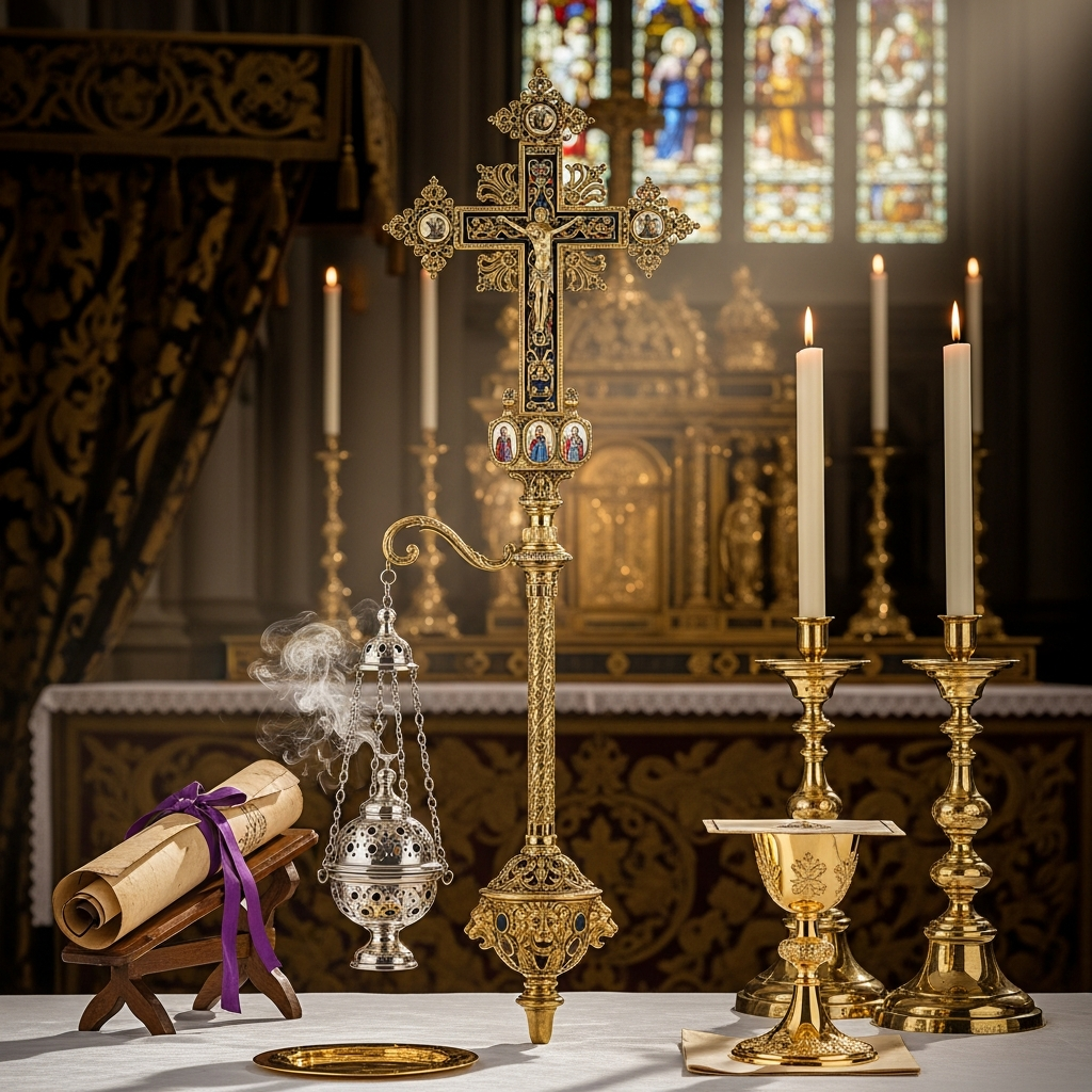 Haçın kullanıldığı dinî törenlerden biri ise Ökaristi’dir. Büyük boyutlu tören haçları dışında, takdis törenlerinde kullanılan veya adak olarak üretilen haçlar daha küçük boyuta sahiptir. Üzerlerinde genellikle aziz tasvirleri ve isimleri görülür. MS XI. yüzyıla kadar haçlar üzerindeki en popüler süslemeyi değerli taşlar ve inciler oluşturmuştur. Ökaristi ayini sırasında altar da kullanılan haçın MS IX. yüzyıldan önceki varlığı tam olarak bilinmemektedir. İlk olarak Tours’lu Gregorius (538-594), tören sırasında altarın üzerine bir haç asıldığını söyler. Ayrıca Gesta Dagoberti (639) adlı eserde, I. Kral Dagobert’in (603-639) Aziz Denis Bazilikası’nda sunağın arkasına koyduğu büyük bir altın haçtan bahsedilir. Diğer yandan Braun, kilisede eğer bir kiboryum varsa üzerine bir veya birden fazla haçın asılmış olabileceğini de söyler. III. Leo (717-741) ve IV. Leo’nun (775-780) vitalarında ise bu imparatorların Aziz Petrus Kilisesi’ne bağışladıkları haçlardan söz edilir.