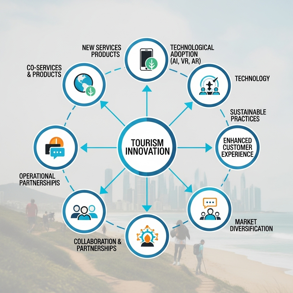 Türk Dil Kurumu tarafından daha önce yapılan tanımlama ile “Değişen koşullara uyabilmek adına kültürel, toplumsal ve yönetimsel ortamlarda yeni yöntemlerin kullanılmaya başlanması” şeklinde ifade edilen inovasyon, günümüzde yine TDK tarafından “yenileşim” kelimesi ile dilimizdeki yerini almaktadır. İnovasyon, bilimsel ve teknolojik gelişmeler sonucunda keşfedilen yeni bilgi, ürün veya hizmetlerin daha faydalı ve kullanılabilir duruma getirilmesini sağlayan parlak fikirleri ifade etmektedir. Ayrıca inovasyon, işletmelerin ürün ve hizmet yelpazesi ile faaliyette bulunduğu pazarların yenilenmesi ve genişletilmesini; yeni üretim, dağıtım ve tedarik yöntemlerinin oluşturulmasını; iş organizasyonu, yönetim ve işgücünün çalışma koşulları ile işgücü becerilerinde yapılacak geliştirmeleri sağlayan itici bir güç olarak tanımlanmaktadır. İşletmeleri uzun vadeli hedeflere yönlendiren, yeni ekonomik faaliyet alanlarının ortaya çıkmasını sağlayan inovasyonun, turizm sektöründe de yoğun olarak kullanıldığını söylemek mümkündür. En önemli hizmet sektörlerinden biri olarak görülen turizm sektörü değişken, dinamik ve çok yönlü bir yapıya sahip olduğu için yenilikçi hareketlerin düzenli olarak uygulanabildiği alanlardan biridir. Turizm sektöründe uygulanabilir olan inovasyon çeşitleri; ürün inovasyonu, süreç inovasyonu, pazarlama inovasyonu ve organizasyonel inovasyon olarak sıralanabilir.